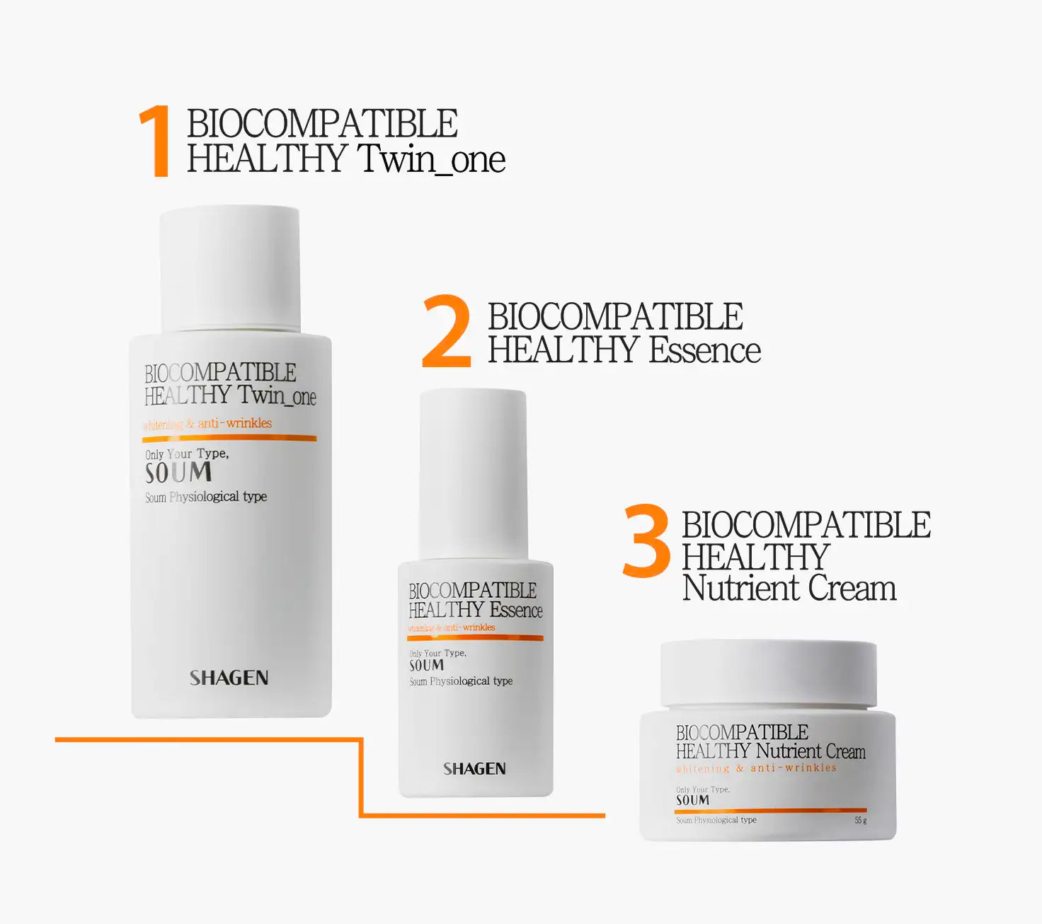 세트의 제품은 권장 사용 순서를 따라 하루에 한두 번 (아침과 저녁) 사용해야 합니다. 풍부한 성분을 함유한 Shagen 제품은 짧은 시간 내에 눈에 띄는 변화를 만들어내며, 사용자의 에너지에 맞춘 맞춤형 포뮬러로 건강하고 빛나는 피부를 돕습니다.